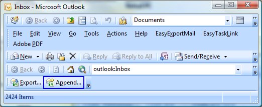 - Select one or more emails then click the EasyExportMail menu and select Append.
