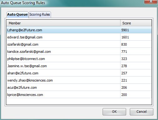 This panel shows the total scores accumulated for each queue. If you wish to suppress display of a queue, simply delete some emails from this queue.